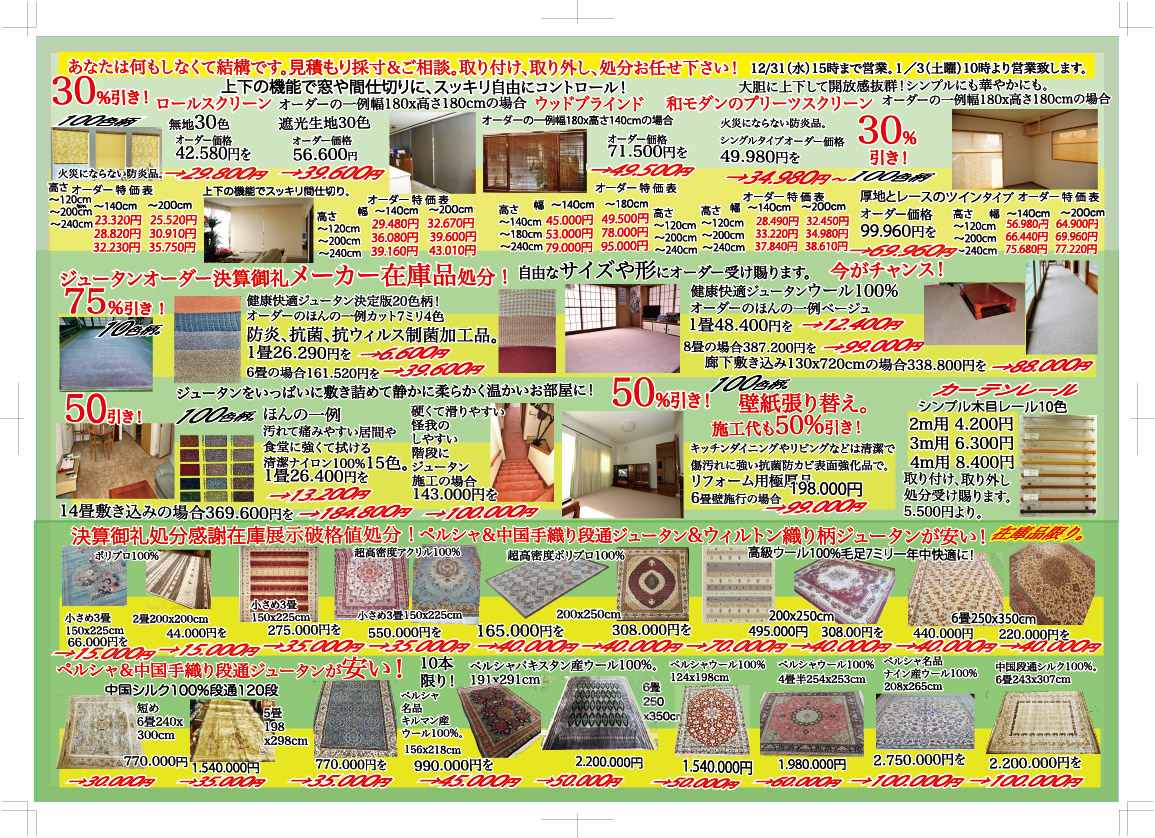 12月末まで全品決算感謝レジにてさらに10%お値段引き致します。